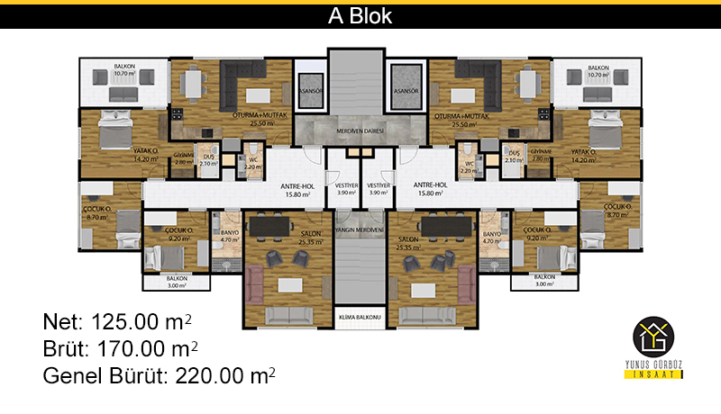 - Ortak alanlar için tam kapasiteli Jeneratör